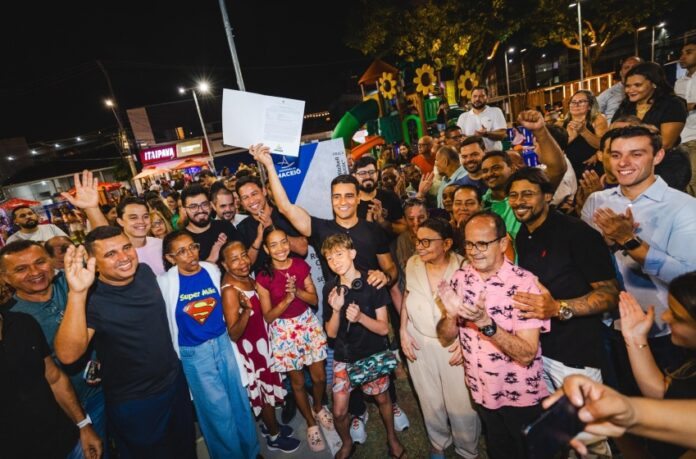 População compareceu ao evento e comemorou a entrega do espaço renovado com o prefeito JHC e o vice, Rodrigo Cunha. Foto: Jonathan Lins