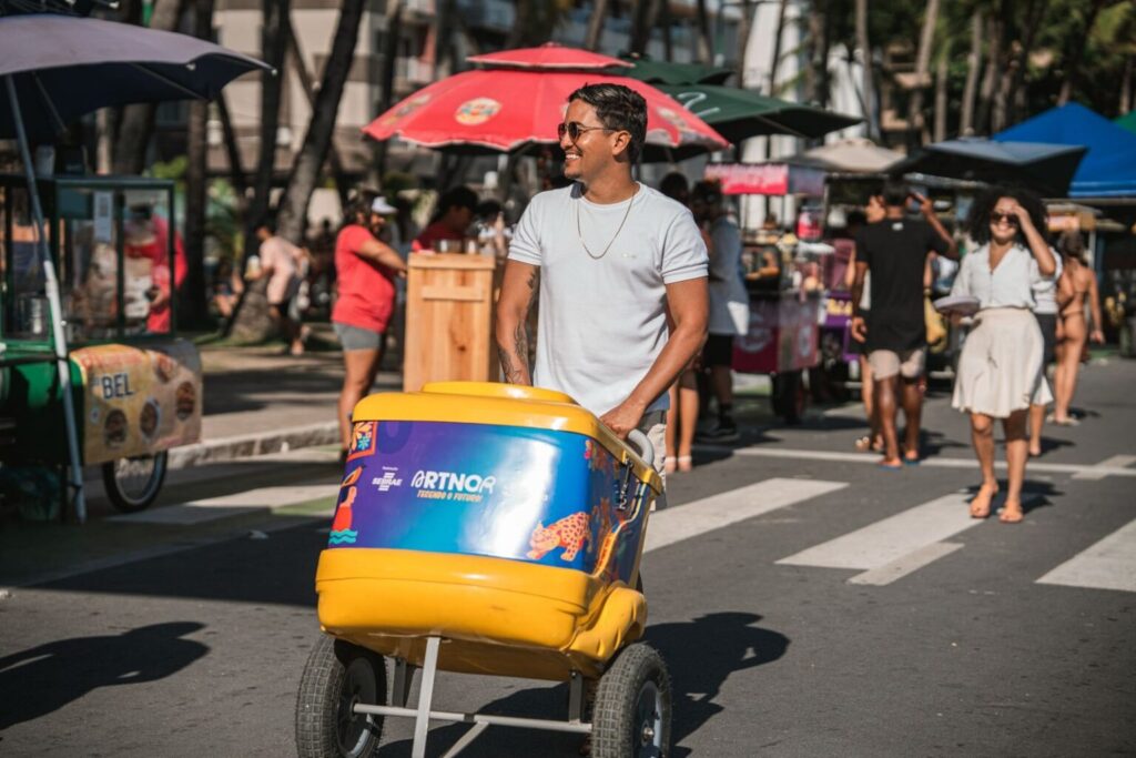 Promovida pelo Sebrae Alagoas, a iniciativa antecipou o clima do evento e apresentou a programação que será realizada na próxima quinta-feira (19), no bairro histórico do Jaraguá. Durante a ação, equipes distribuíram leques, picolés, folders com toda a programação e lixo car, pequenas lixeiras para veículos, enquanto o público participava de uma dinâmica com um jogo gigante de Jenga, que rapidamente virou ponto de encontro para famílias e grupos de amigos.